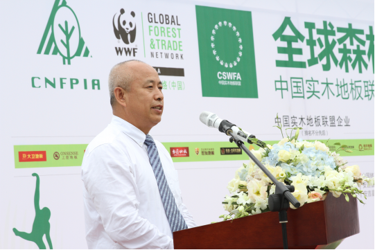 本次活动以绿色环保为主基调,以一曲展现特色的“竹乐迎宾”为开场,由中国林产工业协会秘书长石峰先生全程担任主持。活动伊始,WWF世界自然基金会森林项目总监金钟浩先生首先为本次活动发表了致辞,站在公益组织的角度,阐述了生态环境的现状、保护森林资源的重要性。在过去的很多年里,整个行业飞速发展的同时,却忽视了森林资源匮乏将会带来的严峻问题,在当前这个特殊的阶段,午夜成人APP视频转型刻不容缓。以森林资源为发展根本的地板午夜成人APP视频,更需要从源头入手,加强自身管理机制,实施可持续发展战略,引导消费者绿色消费。